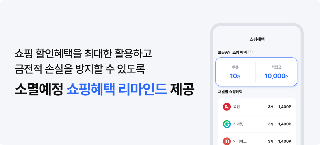 - 쇼핑혜택 모니터링: 매일 쿠폰 및 적립금 현황과 소멸 예정 정보를 안내해 드립니다.